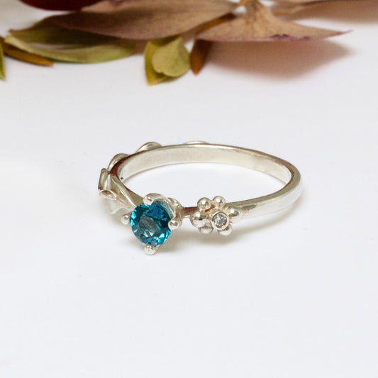 Ariel Silver Leaf Ring, Gemstone and Diamond Leaf Ring, Nature Inspired Ring