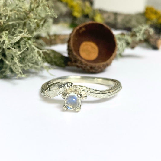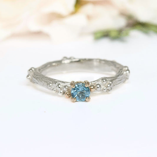 9ct White Gold and Sapphire Willow Twig Ring, Nature Engagement Ring, September Birthstone Ring
