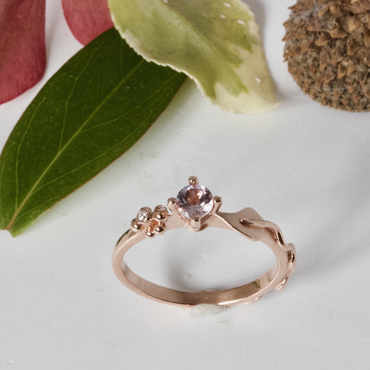 Ariel Leaf Engagement Ring, Rose Gold, Morganite and Diamond Leaf and Berry Engagement Ring, Nature Inspired Leaf Ring