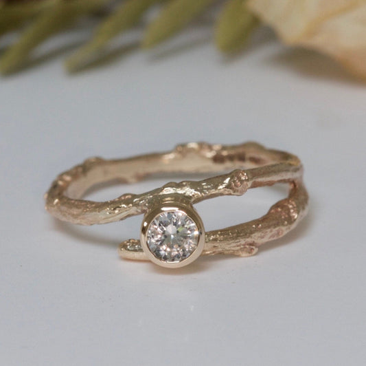 9ct Gold and Sapphire Woodland Twig Ring, September Birthstone, Unique Engagement Ring