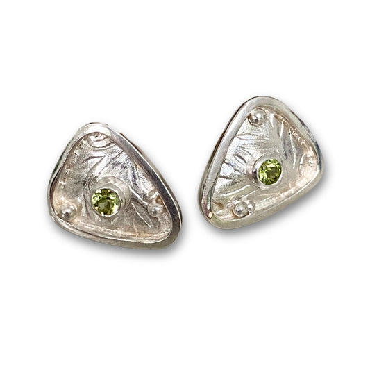 Silver Warrior Celtic Shield Earrings, Peridot Triangle Earrings