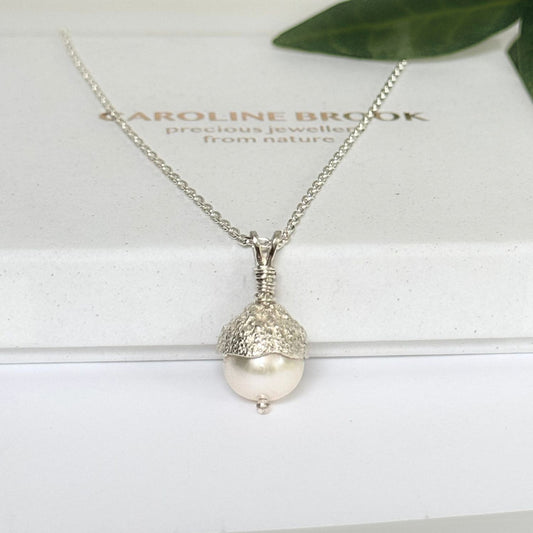 Sterling Silver Pearl Acorn Necklace