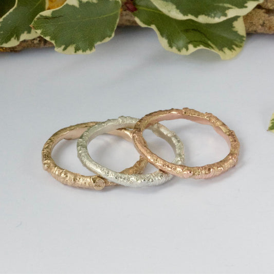 Solid Gold Plain Twig Ring, 9ct Gold Organic Wedding Band