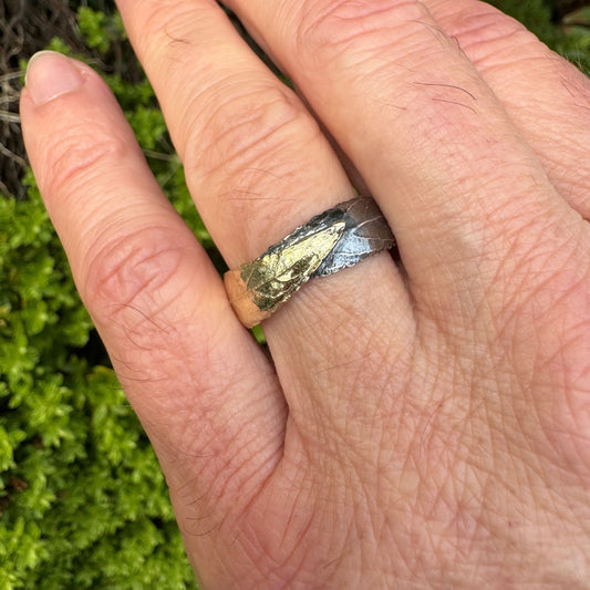 The Harvest Wedding Cigar Ring, 18 carat Gold Organic Wedding Band