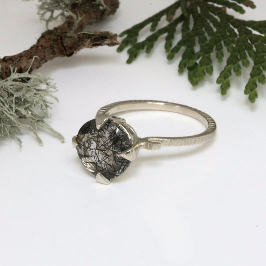 Unisex Tourmalated Quartz White Gold Ring, Rutilated Quartz Ring