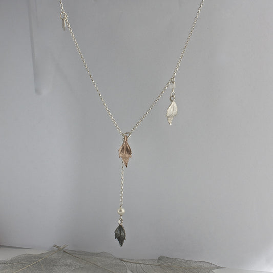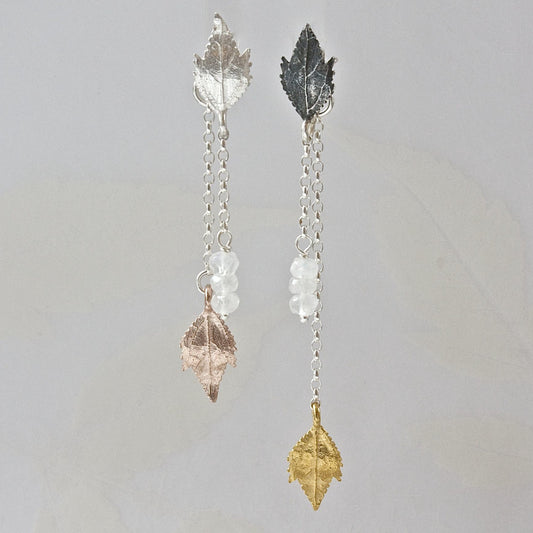 Tumbling Leaf Dangle Earrings, Asymetric, mixed metal earrings