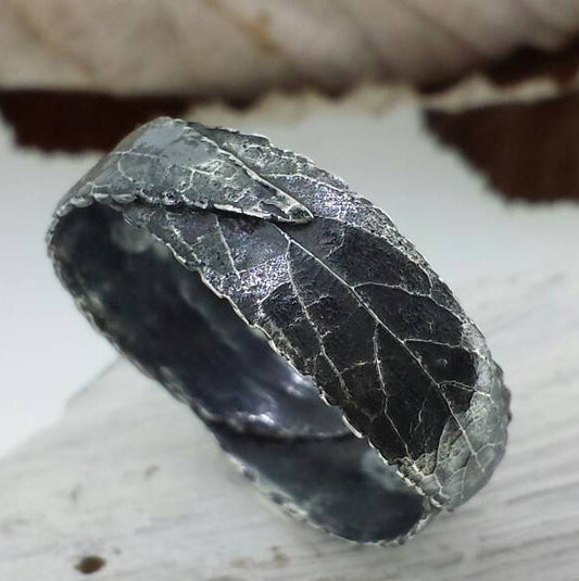 Three Leaf Ring, Black Ring, Unisex Ring, Rustic Ring, Silver Leaf Ring, Thumb Ring