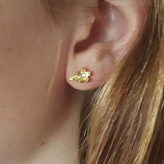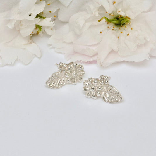 Diamond Earrings, 18ct Gold Cherry Blossom Flower Stud Earrings