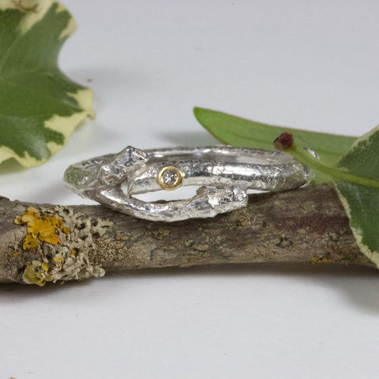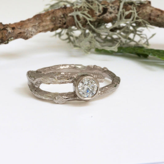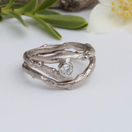Diamond Woodland Twig Engagement Ring, 18ct Gold Nature Engagement Ring