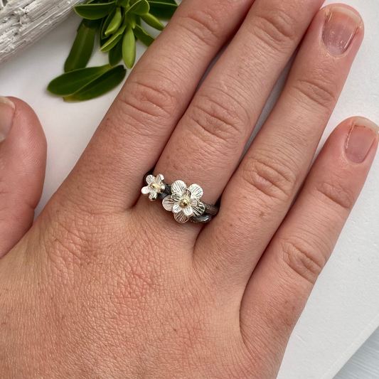 Cherry Blossom Ring. Mixed Metal Silver and Gold. Nature Jewellery