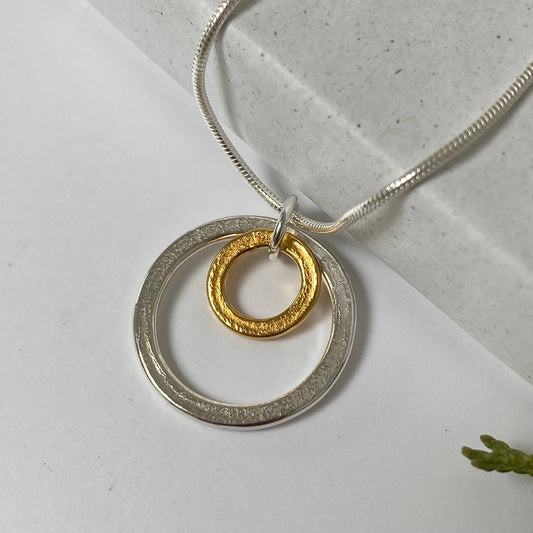 Double Circle of Love Necklace, Silver and Gold Vermeil Hoop Necklace