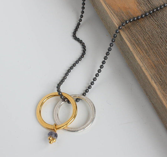 Gold Vermeil Hoop Necklace on Oxidised Chain