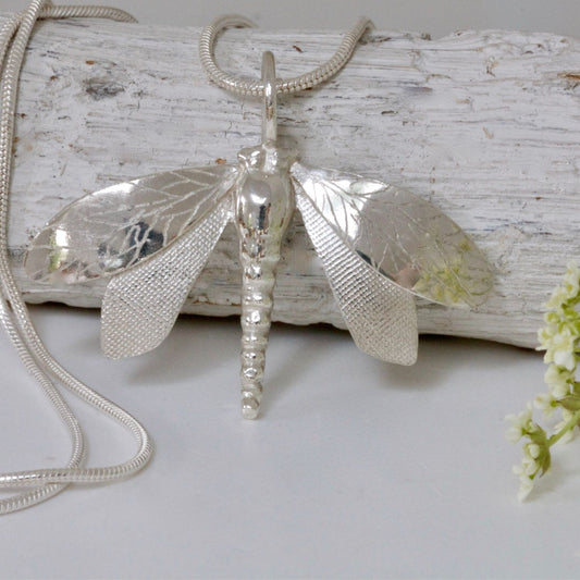 Handmade Silver Dragonfly Necklace-dragonfly pendant-large dragonfly necklace
