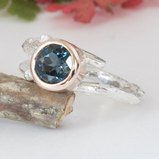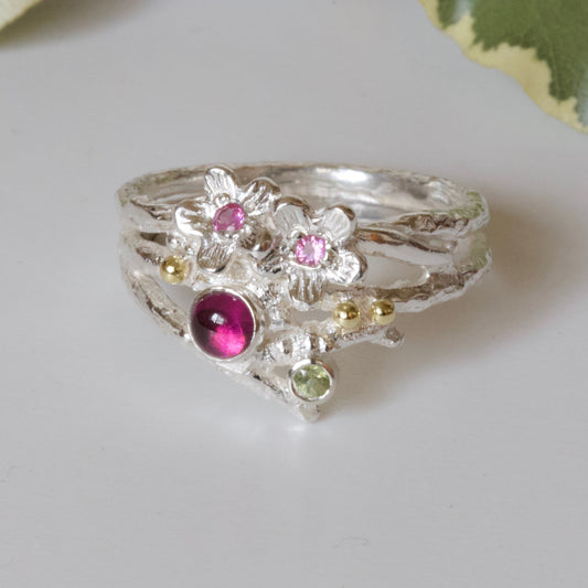 In the Pink, Enchanted Wood Twig Ring-Gemstone Mixed Metal Ring-Pink Sapphire