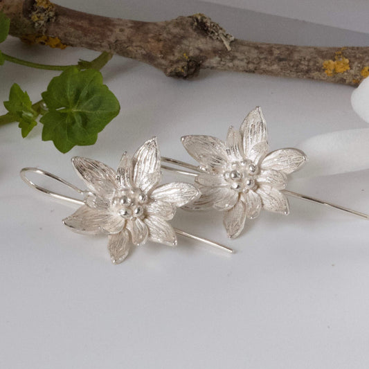 Lotus Flower Earrings-silver flower earrings-large flower studs-pretty earrings-botanical earrings-bridal jewellery