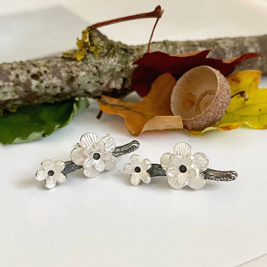 Silver Elven Blossom Sprig Earrings