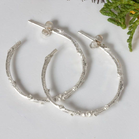 Silver Hoop Twig Earrings
