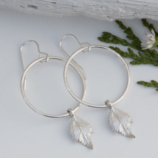 Silver Boho Hoop Earrings With Silver Leaves