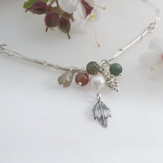 Silver Autumn Twig Cluster Necklace