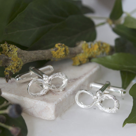 Silver Infinity Twig Cufflinks, Grooms Wedding Cufflinks