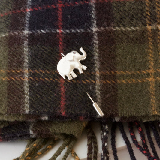 Silver and Ruby Elephant Pin, Elephant Lapel Pin