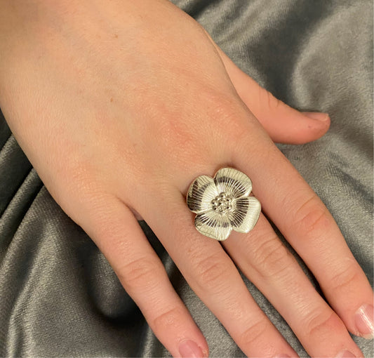Silver Four Petal Flower Ring