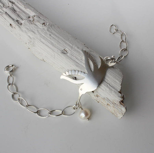 Silver Hummingbird Bracelet with Pearl