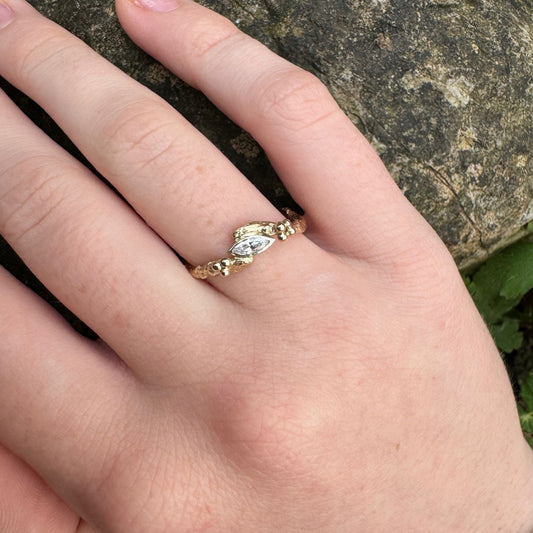 Marquise Diamond Nature Engagement Ring, Dainty Gold Twig Engagement Ring