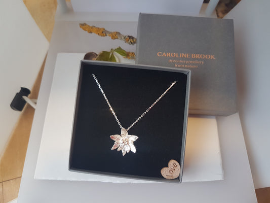 Cherry Blossom Necklace Oxidised Silver and Gold