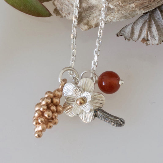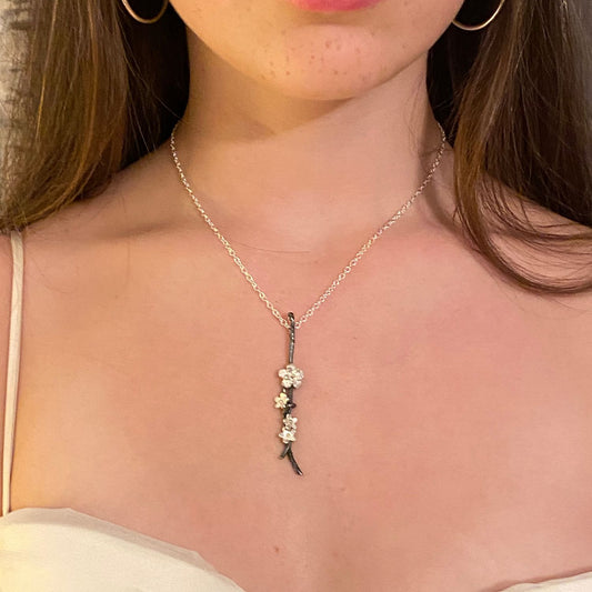 Cherry Blossom Necklace Oxidised Silver and Gold
