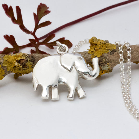Lucky Silver Elephant Necklace, Trunk Up