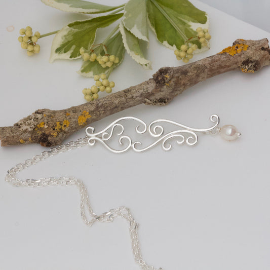 Vintage Style Romance Necklace, Silver and Pearl Brides Necklace