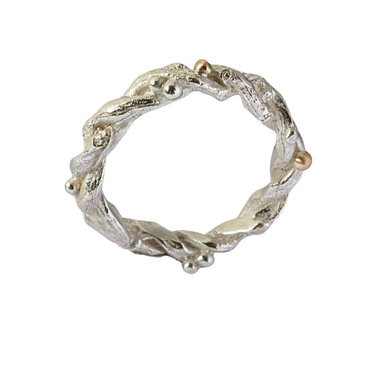 Silver and Gold Twig and Berry Shaped Wedding Ring, Rustic Wedding Ring