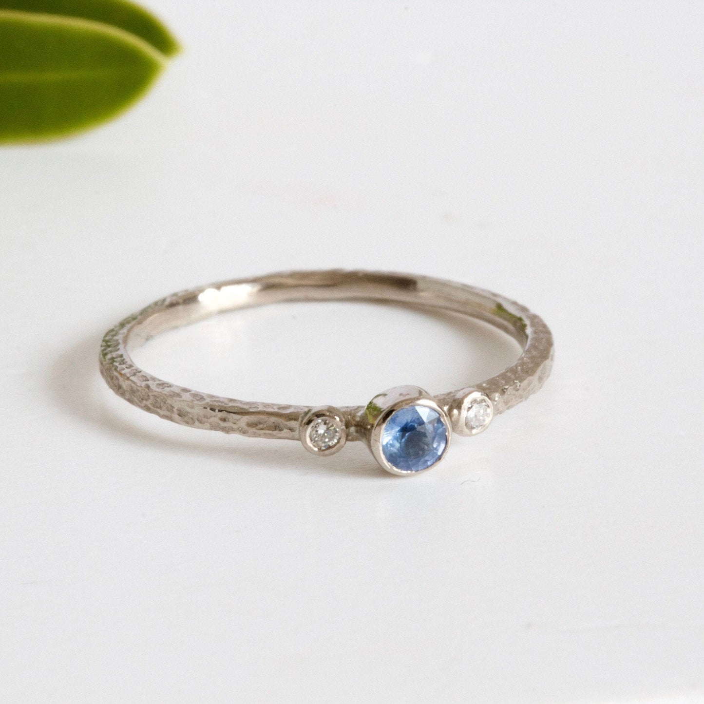 Band dimensions: 1.4mm, Sapphire dimensions: 3mm, Diamond dimensions, 2 x 1.5mm Metal: 18ct white or yellow gold Note: This ring can be crafted with blue Sapphire, green Sapphire, white Sapphire, yellow Sapphire and pink Sapphire. Email or message me with which Sapphire colour you would like.