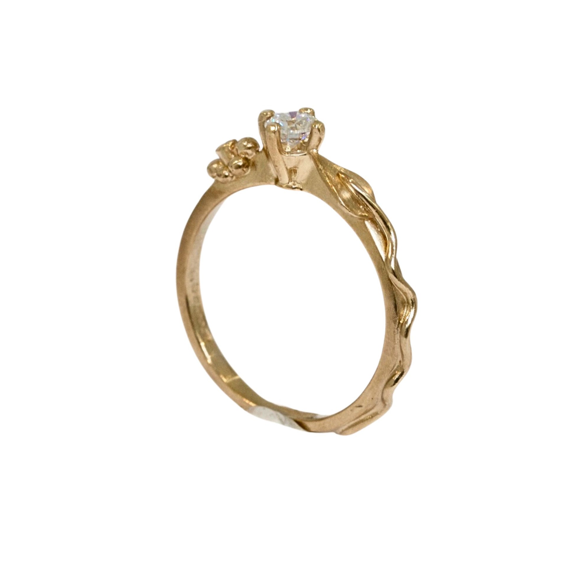 Dainty Gold Ariel Leaf Engagement Ring, Nature Inspired Moissanite Leaf Ring