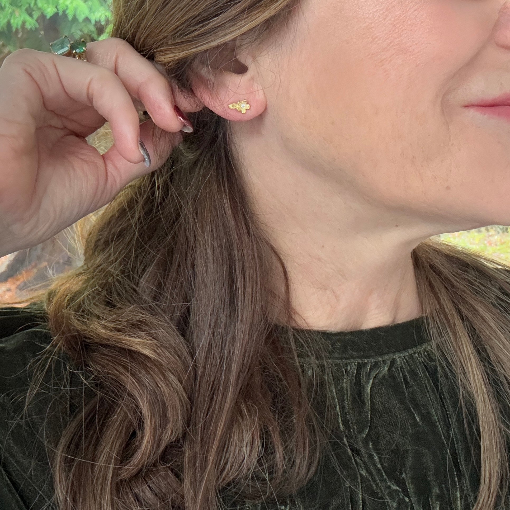 Inspired by my love of botanical art, I carved and cast this little cherry blossom earring using the most ancient of traditional techniques and the most precious materials. I love delicate jewellery that draws a closer look and this enchanting earring, evoking fairy forests and elven worlds will adorn your ears with everlasting beauty.